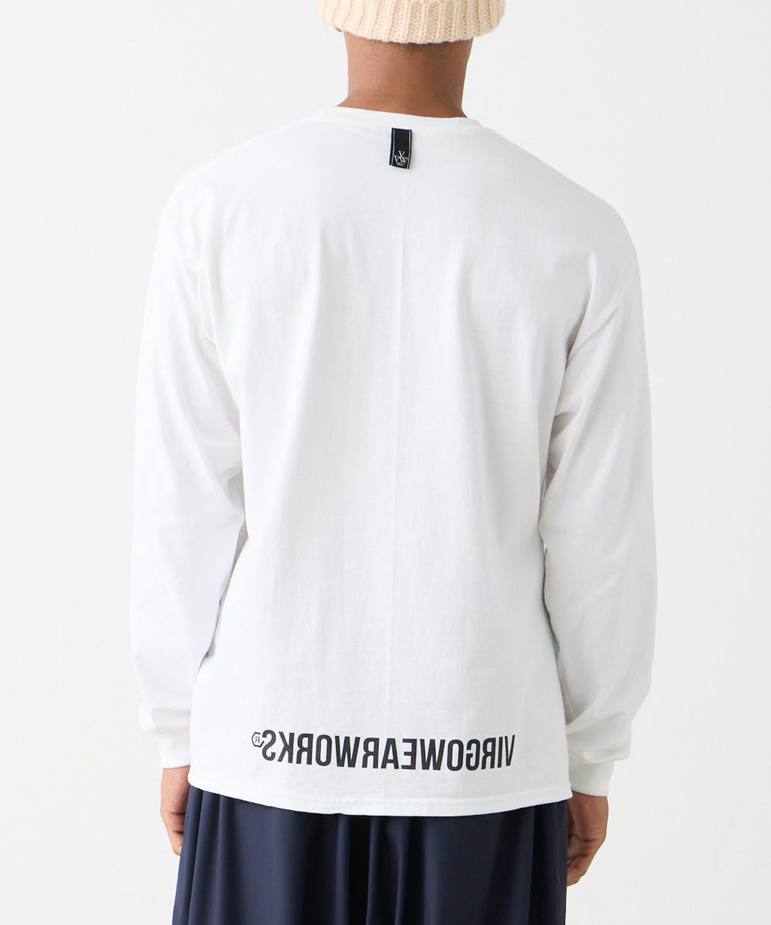 左胸のポケットと後ろ裾にデザインされた反転ロゴがポイントです。