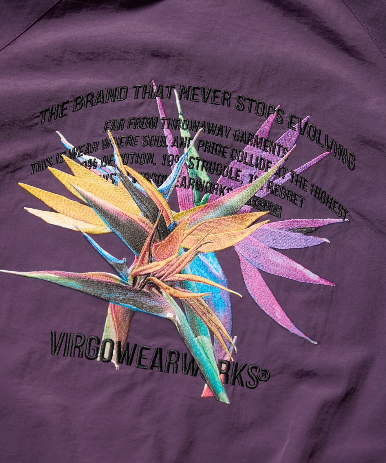 表面は和と洋を融合させたオリジナルのプラント柄をベトジャン風に総刺繍で表現。