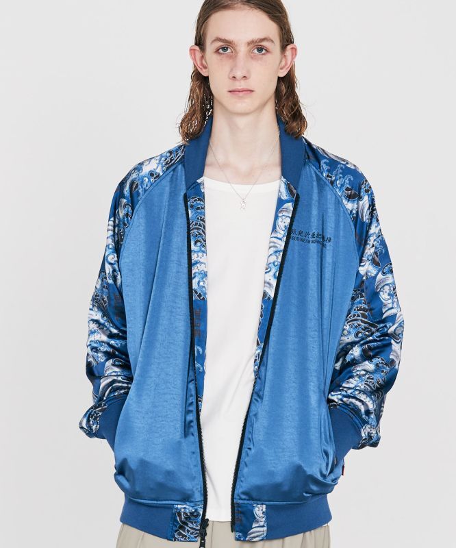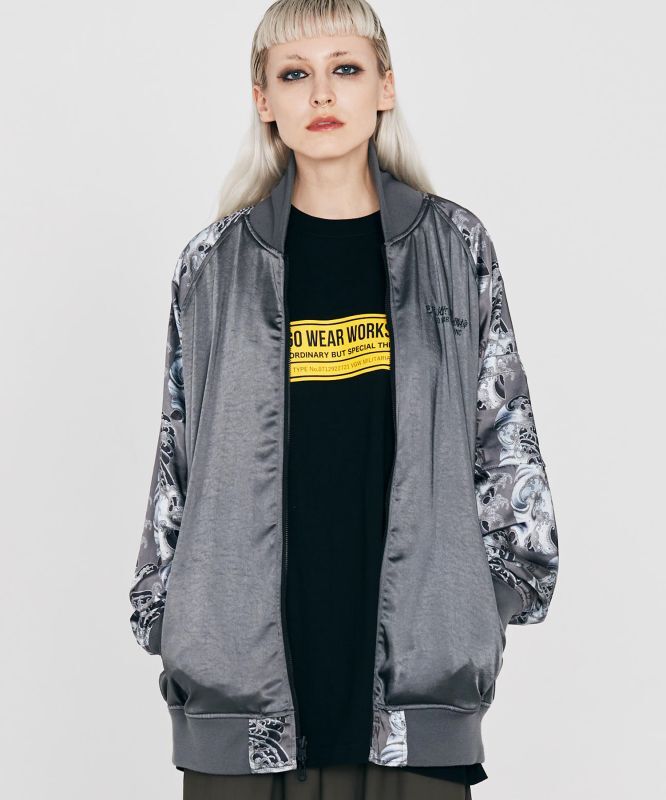 ヴィンテージ風サテン生地を使用しリバーシブルで身頃、袖が入れ替わり総柄を楽しめます