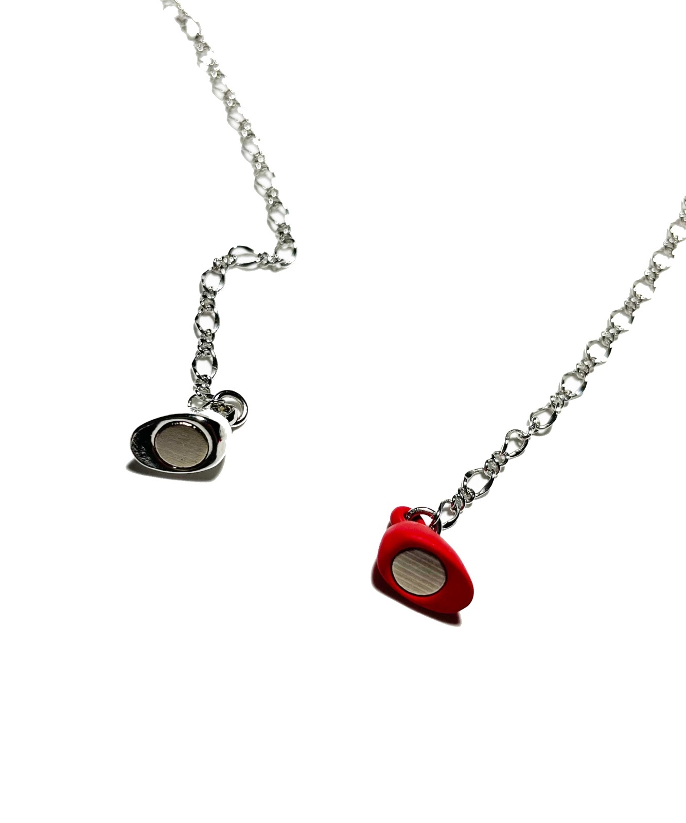 チェーン部分に継ぎ目がなく、マグネット式となったハート型のトップ部分で脱着をする珍しいデザイン。