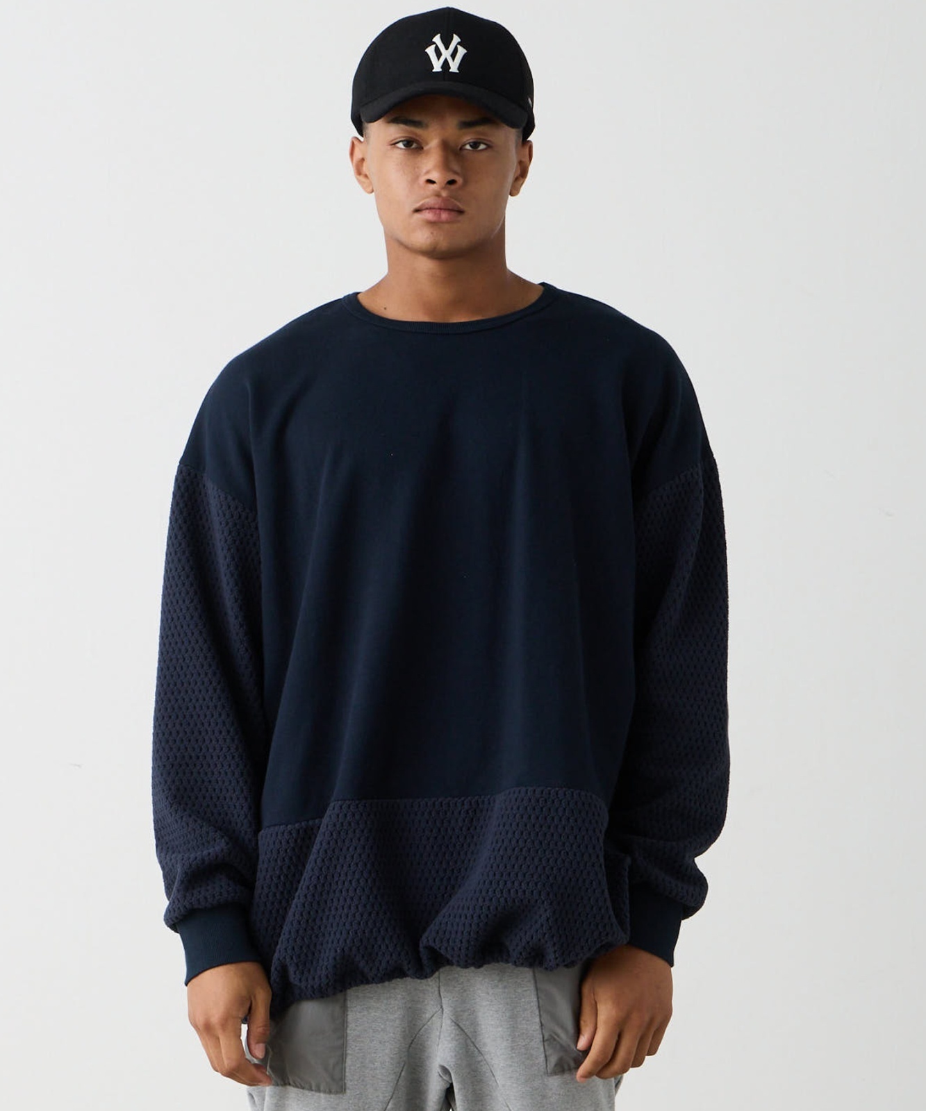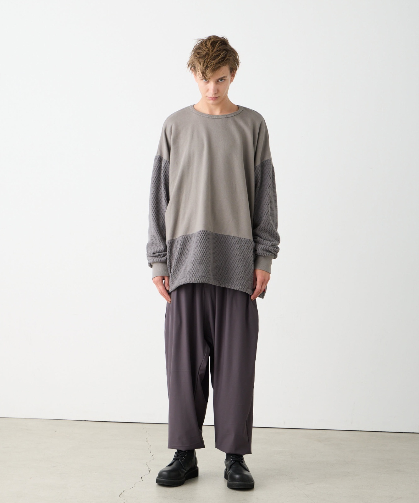裏毛とフリースをMIXさせたクルーネックスウェット。
