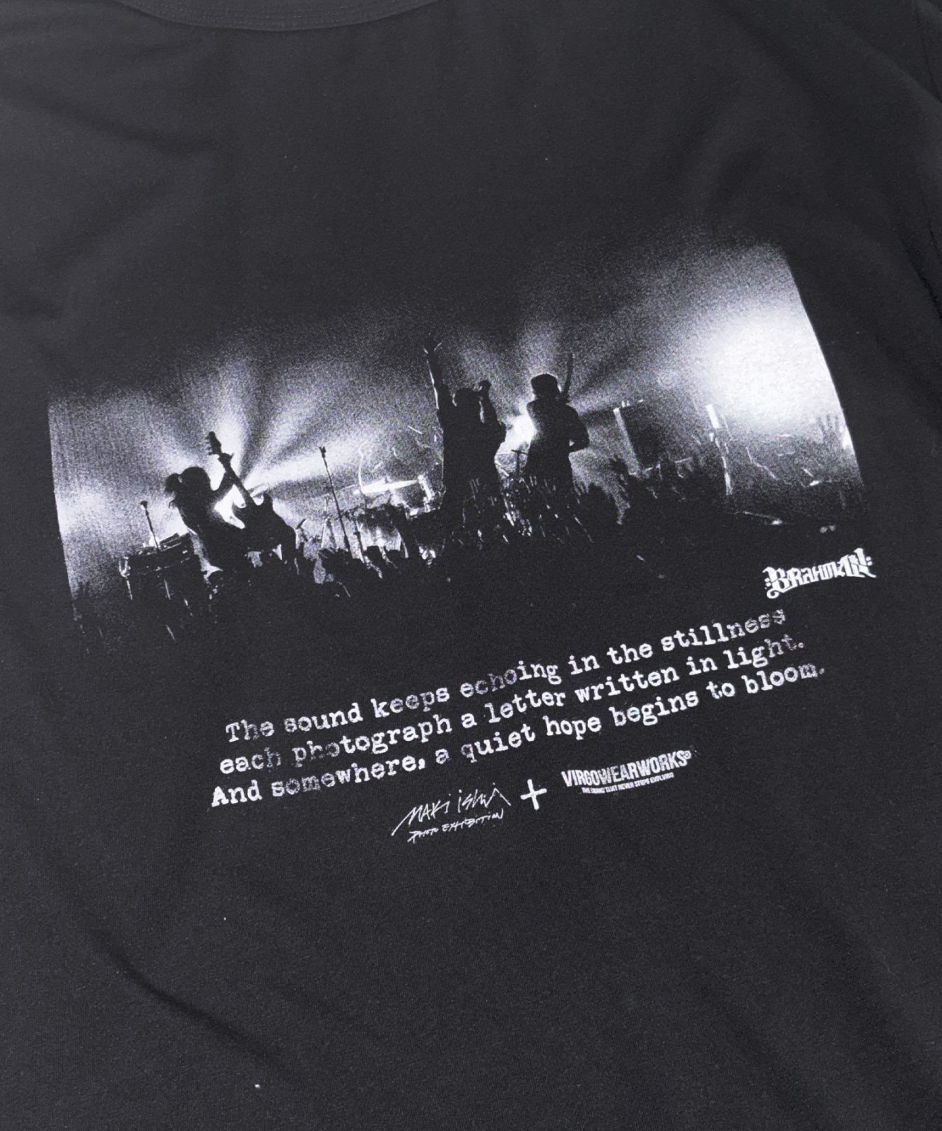 VIRGOwearworksで多くの支持を誇る2色の7分袖カットソーをベースにBLACKには石井麻木氏が撮影したBRAHMANのLIVEフォトをドロップ。