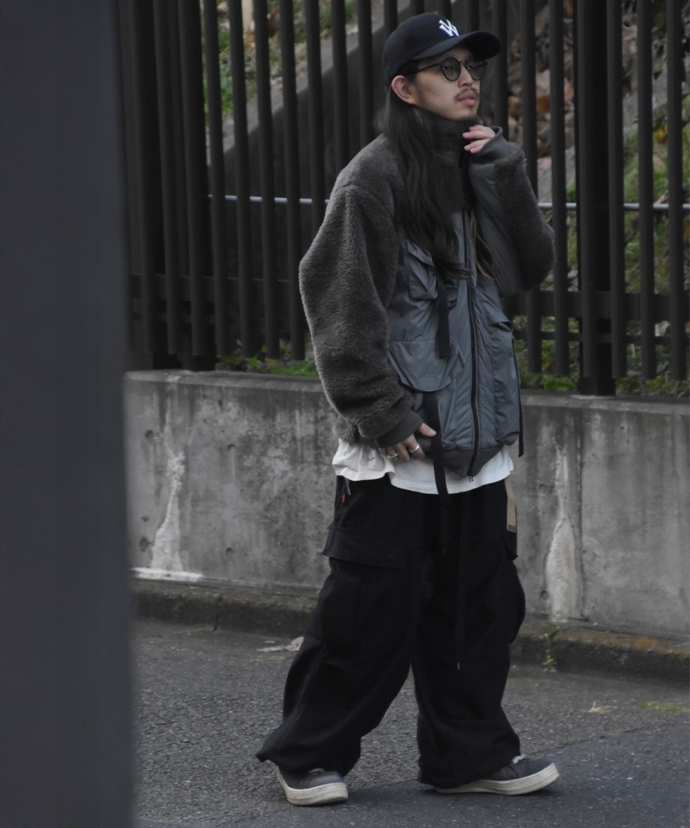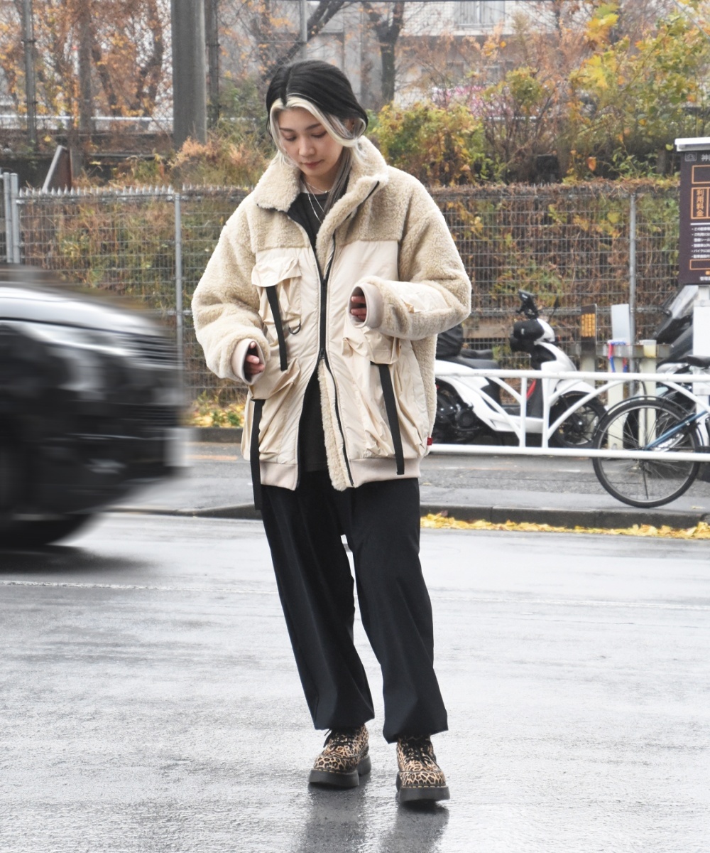 ワイドシルエットのボアジャケット。アウトドアとミリタリーを融合させた個性あふれる一着。